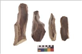 | Description / विवरण | Specimen of flake tools with prominent flaking marks. They are made up of a short flakes with sides trimmed. |