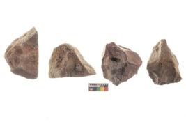 | Description / विवरण | There are n 4 utilized flakes. There are multi directional irregular scar pattern on both dorsal and ventral face of the flakes. two are tapering at one end and two have sharp edges. |