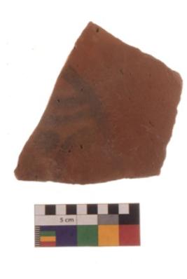 | Description / विवरण | Specimen of Potsherd black on red painted pottery. It is fine fabric in sharp contrast with painted design are executed in black pigment. |