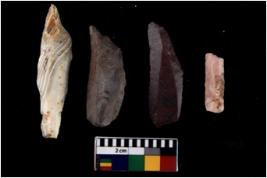 | Description / विवरण | There are n 4 Flake tool; There are multidirectional irregular scar pattern on them. few have blunt edges, Some of them are tapering at one end. |