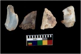 | Description / विवरण | There are n 4 utilized flake cores. Out of them three are made up of Chalcedony and one is made up of Chert. There are multi directional irregular scar pattern on them. Two are tapering at one end and two have blunted edges. |