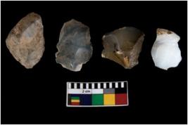 | Description / विवरण | There are n 4 ; worked utilized flakes; there are multidirectional irregular scar pattern on both dorsal and ventral face of the flakes. All are having sharp edges. |