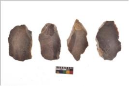 | Description / विवरण | Specimen of flake tools with prominent flaking marks. They are made up of a short flakes with sides trimmed. |