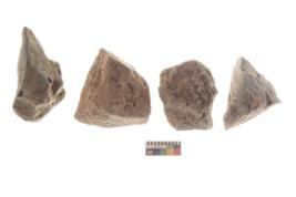 | Description / विवरण | There are n 4 utilized flakes. There are multi directional irregular scar pattern on both dorsal and ventral face of the flakes. three are tapering at one end and one has pointed edges. |