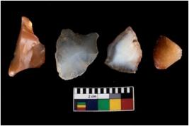 | Description / विवरण | There are n 4 ; worked utilized flakes; there are multidirectional irregular scar pattern on both dorsal and ventral face of the flakes. All are having sharp edges. |