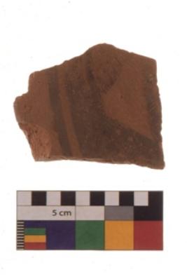 | Description / विवरण | Specimen of Potsherd black on red painted pottery. It is fine fabric in sharp contrast with painted design are executed in black pigment. |