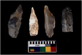 | Description / विवरण | There are n 4 flakes tool; there are flakes with sides trimmed, Marks of secondary flaking are present on the both the faces. The dorsal is relatively flat. |