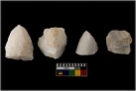 | Description / विवरण | There are n 4 of utilized worked cores. They show multidirectional irregular scar pattern. Two are tapering at one end. |