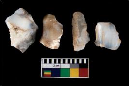 | Description / विवरण | There are n 4 ; worked utilized flakes; there are multidirectional irregular scar pattern on both dorsal and ventral face of the flakes. All are having sharp edges. |