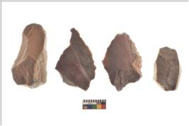 | Description / विवरण | Specimen of flake tools with prominent flaking marks. They are made up of a short flakes with sides trimmed. |