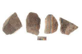 | Description / विवरण | There are n 4 utilized flakes. There are multi directional irregular scar pattern on both dorsal and ventral face of the flakes. three are tapering at one end and one has sharp edge. |