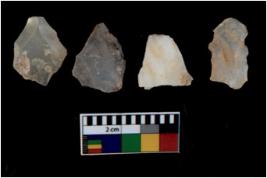 | Description / विवरण | There are n 4 utilized flake cores. There are multi directional irregular scar pattern on them. Three have blunted edge and one has round edge. |
