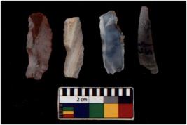 | Description / विवरण | There are n 4 flakes tool; there are flakes with sides trimmed, Marks of secondary flaking are present on the both the faces. The dorsal is relatively flat. |