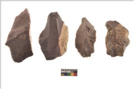 | Description / विवरण | Specimen of flake tools with prominent flaking marks. They are made up of a short flakes with sides trimmed. |