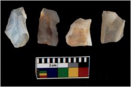 | Description / विवरण | There are n 4 utilized flake cores. There are multi directional irregular scar pattern on them. One has blunted edge and three have flat base. |