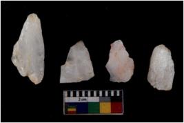 | Description / विवरण | There are n 4 flake cores. All of them are fully fluted flake cores without any trace of crested ridge flakes. Some are tapering at one end. Few have sharp edges while some have flat base. |