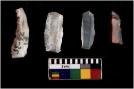 | Description / विवरण | There are n 4 Flake tool; There are multidirectional irregular scar pattern on them. few have blunt edges, Some of them are tapering at one end. |