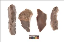 | Description / विवरण | Specimen of flake tools with prominent flaking marks. They are made up of a short flakes with sides trimmed. |