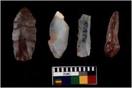 | Description / विवरण | There are n 4 flakes tool; there are flakes with sides trimmed, Marks of secondary flaking are present on the both the faces. The dorsal is relatively flat. |