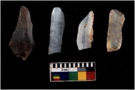 | Description / विवरण | There are n 4 flakes tool; there are flakes with sides trimmed, Marks of secondary flaking are present on the both the faces. The dorsal is relatively flat. |