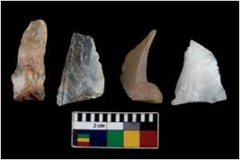| Description / विवरण | There are n 4 ; worked utilized flakes; there are multidirectional irregular scar pattern on both dorsal and ventral face of the flakes. All are having sharp edges. |