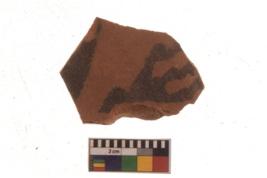 | Description / विवरण | Specimen of Potsherd black on red painted pottery. It is fine fabric in sharp contrast with painted design are executed in black pigment. |