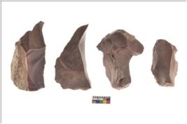 | Description / विवरण | Specimen of flake tools with prominent flaking marks. They are made up of a short flakes with sides trimmed. |