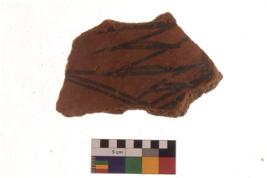 | Description / विवरण | Specimen of Potsherd black on red painted pottery. It is fine fabric in sharp contrast with painted design are executed in black pigment. |