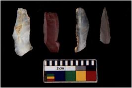| Description / विवरण | There are n 4 Flake tool; There are multidirectional irregular scar pattern on them. few have blunt edges, Some of them are tapering at one end. |