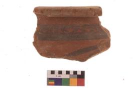 | Description / विवरण | Specimen of a Potsherd with black decorative geometric painting on it.It is set of two zigzag bands. |
