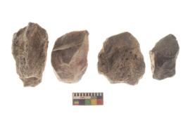 | Description / विवरण | There are n 4 utilized flakes. There are multi directional irregular scar pattern on both dorsal and ventral face of the flakes. two are tapering at one end and two have sharp edges. |