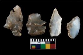 | Description / विवरण | There are n 4 ; worked utilized flakes; there are multidirectional irregular scar pattern on both dorsal and ventral face of the flakes. All are having sharp edges. |