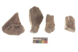 | Description / विवरण | There are n 4 utilized flakes. There are multi directional irregular scar pattern on both dorsal and ventral face of the flakes. three are tapering at one end and one has blunted edge. |
