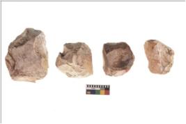 | Description / विवरण | There are n 4 utilized flake cores. There are multidirectional irregular scar pattern on both dorsal and ventral face of the flake cores. |