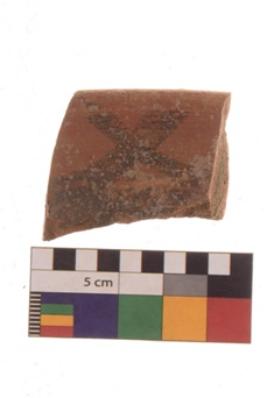 | Description / विवरण | Specimen of X- markdesign on exterior of thin coarse Red ware potsherd. |