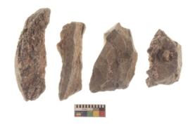 | Description / विवरण | There are n 4 utilized flakes. There are multi directional irregular scar pattern on both dorsal and ventral face of the flakes. two are tapering at one end and two have sharp edges. |