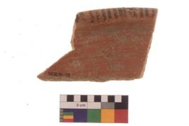 | Description / विवरण | Specimen of Potsherd black on red painted pottery. It is fine fabric in sharp contrast with painted design are executed in black pigment. |