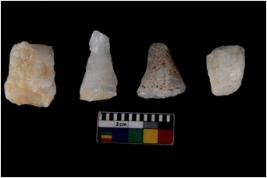 | Description / विवरण | There are n 4 flake cores. All of them are fully fluted flake cores without any trace of crested ridge flakes. Some have sharp edges whereas some have blunted edges. |