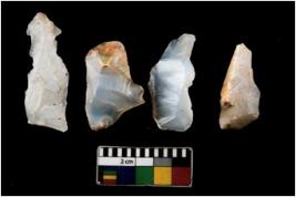 | Description / विवरण | There are n 4 ; worked utilized flakes; there are multidirectional irregular scar pattern on both dorsal and ventral face of the flakes. All are having sharp edges. |