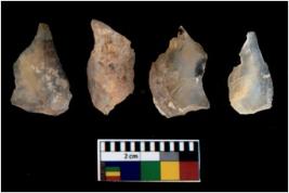 | Description / विवरण | There are n 4 utilized flake cores. There are multi directional irregular scar pattern on them. Two have sharp edges and two are tapering at one end. |