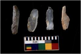 | Description / विवरण | There are n 4 flakes tool; there are flakes with sides trimmed, Marks of secondary flaking are present on the both the faces. The dorsal is relatively flat. |