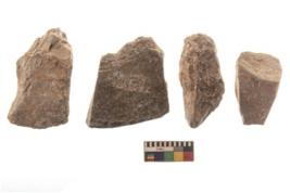 | Description / विवरण | There are n 4 utilized flakes. There are multi directional irregular scar pattern on both dorsal and ventral face of the flakes. two are tapering at one end and two have blunted edges. |