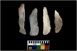 | Description / विवरण | There are n 4 utilized flake cores. There are multi directional irregular scar pattern on them. All of them are tapering at one end. |