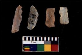 | Description / विवरण | There are n 4 flakes tool; there are flakes with sides trimmed, Marks of secondary flaking are present on the both the faces. The dorsal is relatively flat. |