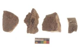 | Description / विवरण | There are n 4 utilized flakes. There are multi directional irregular scar pattern on both dorsal and ventral face of the flakes. three are tapering at one end and one has sharp edge. |