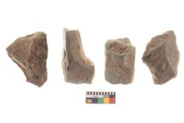 | Description / विवरण | There are n 4 utilized flakes. There are multi directional irregular scar pattern on both dorsal and ventral face of the flakes. three are tapering at one end and one has sharp edge. |