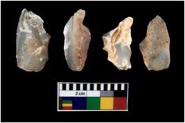 | Description / विवरण | There are n 4 utilized flake cores. There are multi directional irregular scar pattern on them. All of them are tapering at one end. |