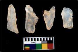 | Description / विवरण | There are n 4 utilized flake cores. There are multi directional irregular scar pattern on them. All of them are tapering at one end. |