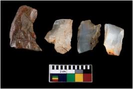 | Description / विवरण | There are n 4 ; worked utilized flakes; there are multidirectional irregular scar pattern on both dorsal and ventral face of the flakes. All are having sharp edges. |