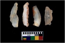 | Description / विवरण | There are n 4 utilized flake cores. There are multi directional irregular scar pattern on them. All of them are tapering at one end. |